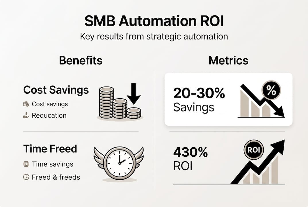 - Strategic automation reduces SMB operating costs by 20 to 30 percent and delivers quick ROI.