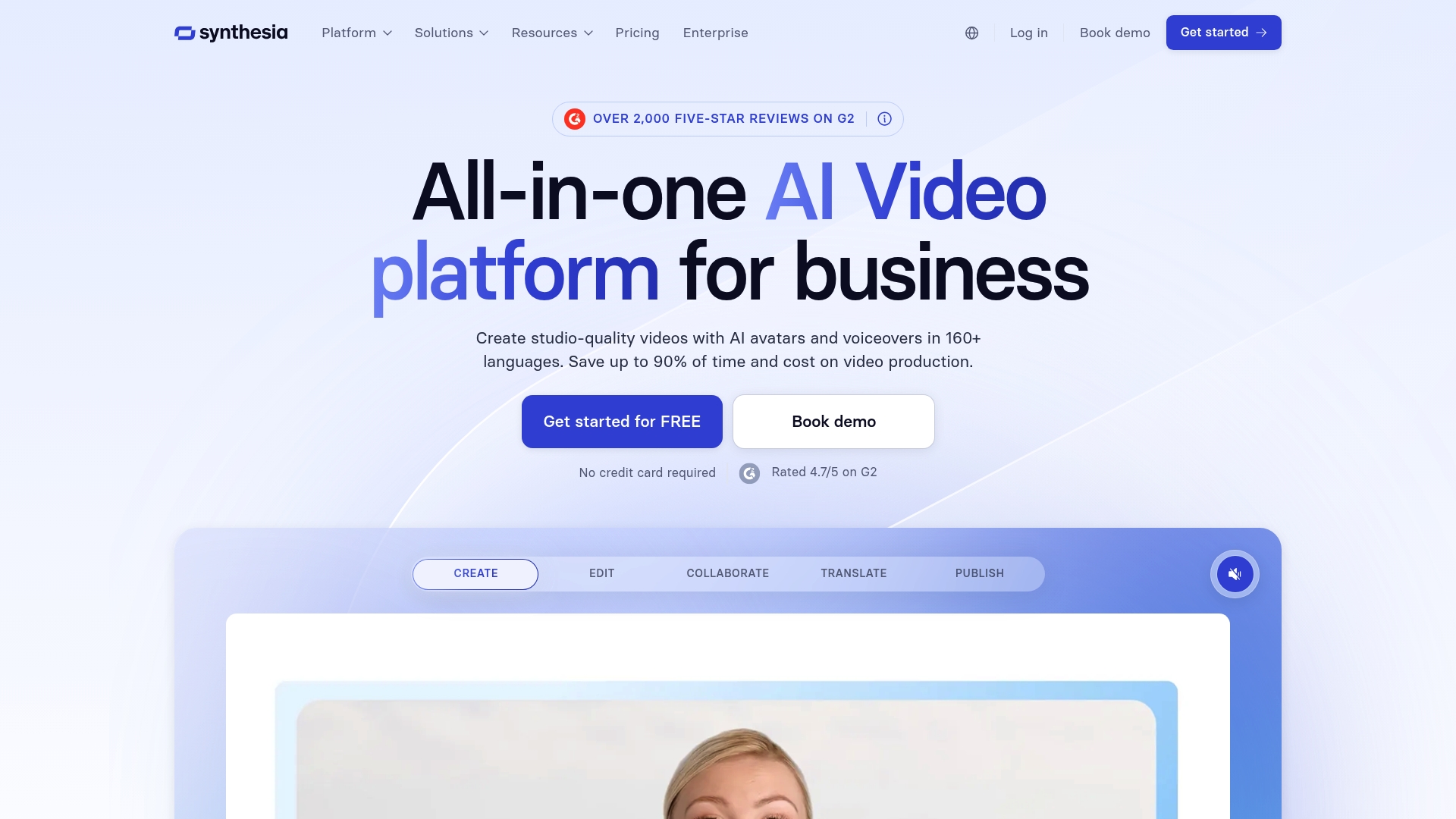 Synthesia enables creation of studio quality videos with 160+ languages and realistic voiceovers, plus tools for localisation, captioning, and an interactive player. The platform also offers a Brand Kit, live collaboration, version control, analytics, and enterprise grade security certifications.