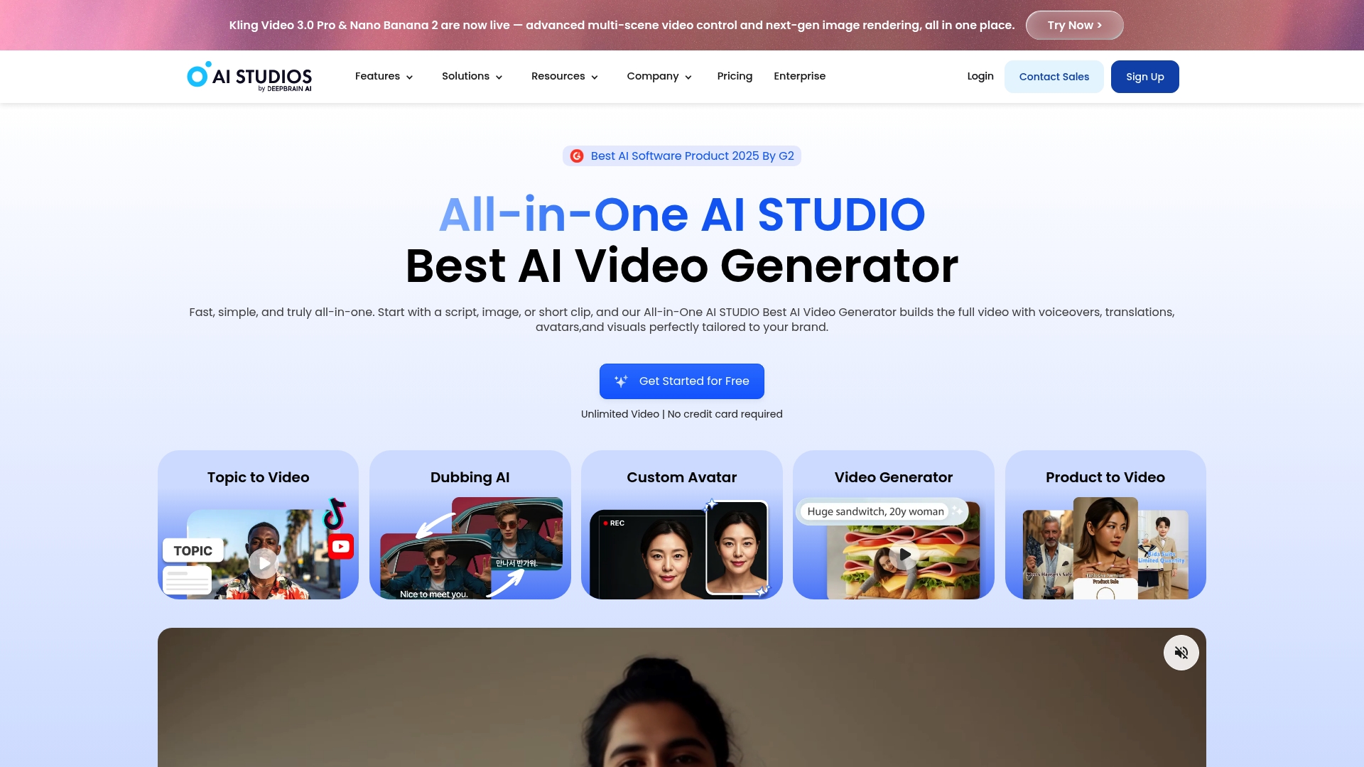 Deepbrain AI is an all-in-one AI studio for video, avatar, dubbing and editing that targets content teams and enterprises. It speeds production and lowers costs while supporting large-scale localisation and interactive avatar scenarios for marketing, training and social content.